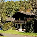 Cozy Chalet With Fireplace In Wooded Area is located 3.5 km from Schoenecker Schweiz and invites guests to enjoy a terrace.
